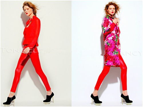 看慣了烈日下的清涼和夏季柔美的飄逸,一襲驚艷、純正的中國紅,加上呼之欲出、嬌艷欲滴的紅玫瑰,不得不說,這即是秋的信息,又是秋的時尚。設計理念大膽富有個性化,風格集冒險、色彩斑斕和吉普賽為一體,盡管是歐美范兒,卻也逃脫不了東方人追逐的眼光;凈色的模版,簡潔的風格以及麻豆動感的游走、媚惑的眼神,加之精心設計打造的玫瑰花項鏈的畫龍點睛。可以想象這樣的色彩與格調,專屬于搭配、情景與氛圍,一旦將其作為店鋪的主打商品置于首頁,即使不用文字,詩也早已成行;即使不用捉摸,香艷早已傳遞。