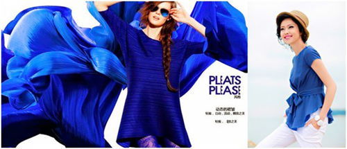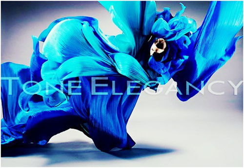 以淺灰、純白為底色,即可平衡藍色的深邃,又可擴張藍色的清新,格調,配以舞姿、律動的麻豆PS,即充分展示了這款女裝在設計中的簡潔、立體剪裁和采用高溫定型真絲制作工藝的高端品質,又充分體現了女性陰柔背后的個性、自由和張力。