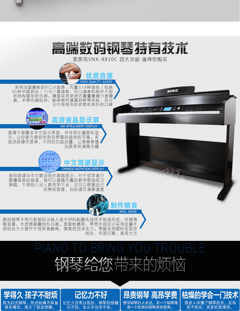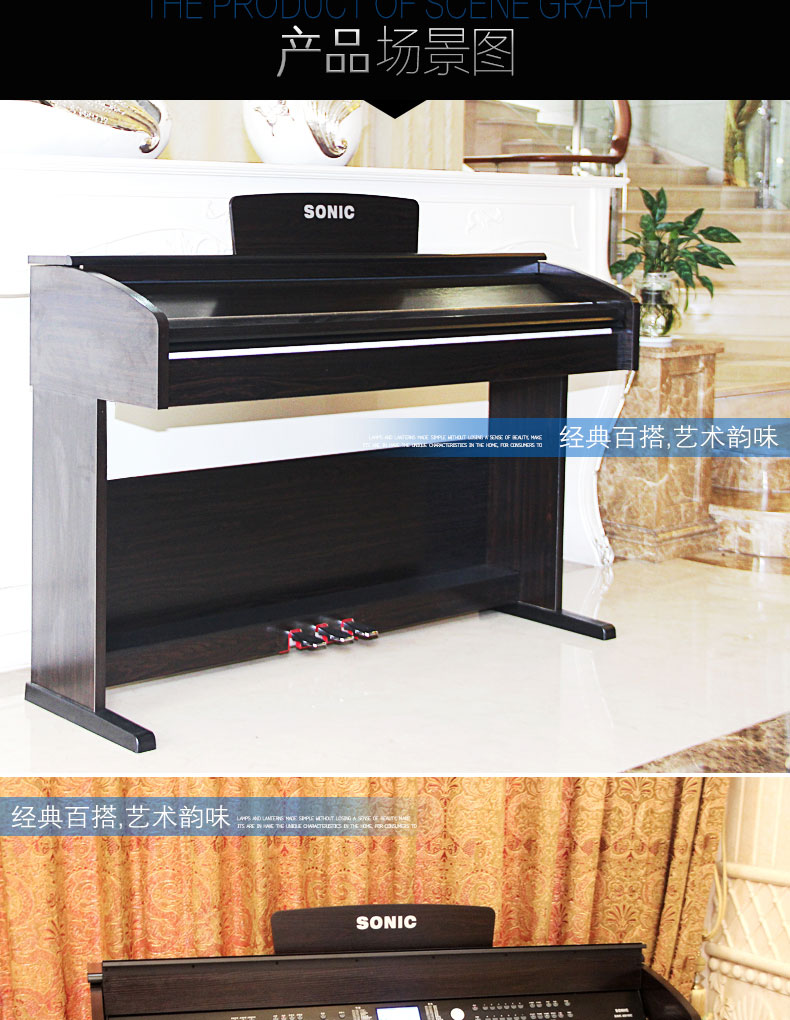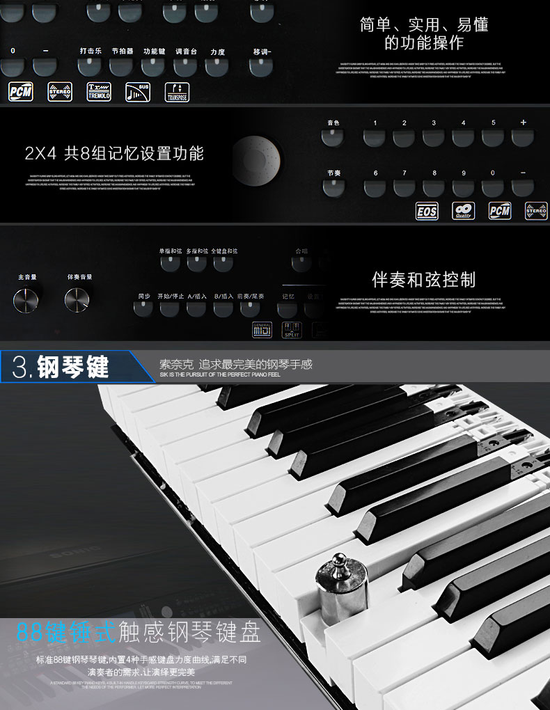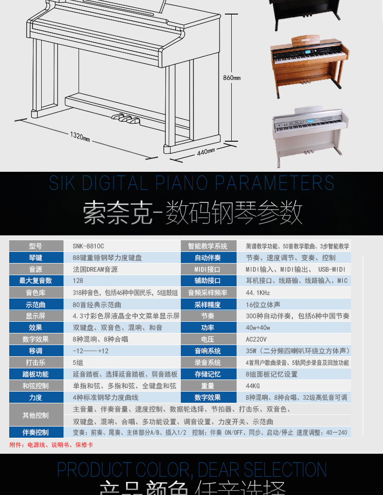 索奈克數(shù)碼鋼琴AP-650M配備有三個(gè)踏板:制音器、柔音和抽選延音