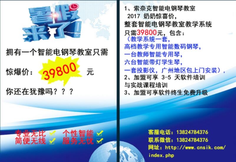 面對(duì)這樣的個(gè)性、智能,具有四大特色的智能數(shù)碼電鋼琴教室,面對(duì)這樣的教室所爆出驚喜價(jià)39800元,你還在猶豫什么呢?